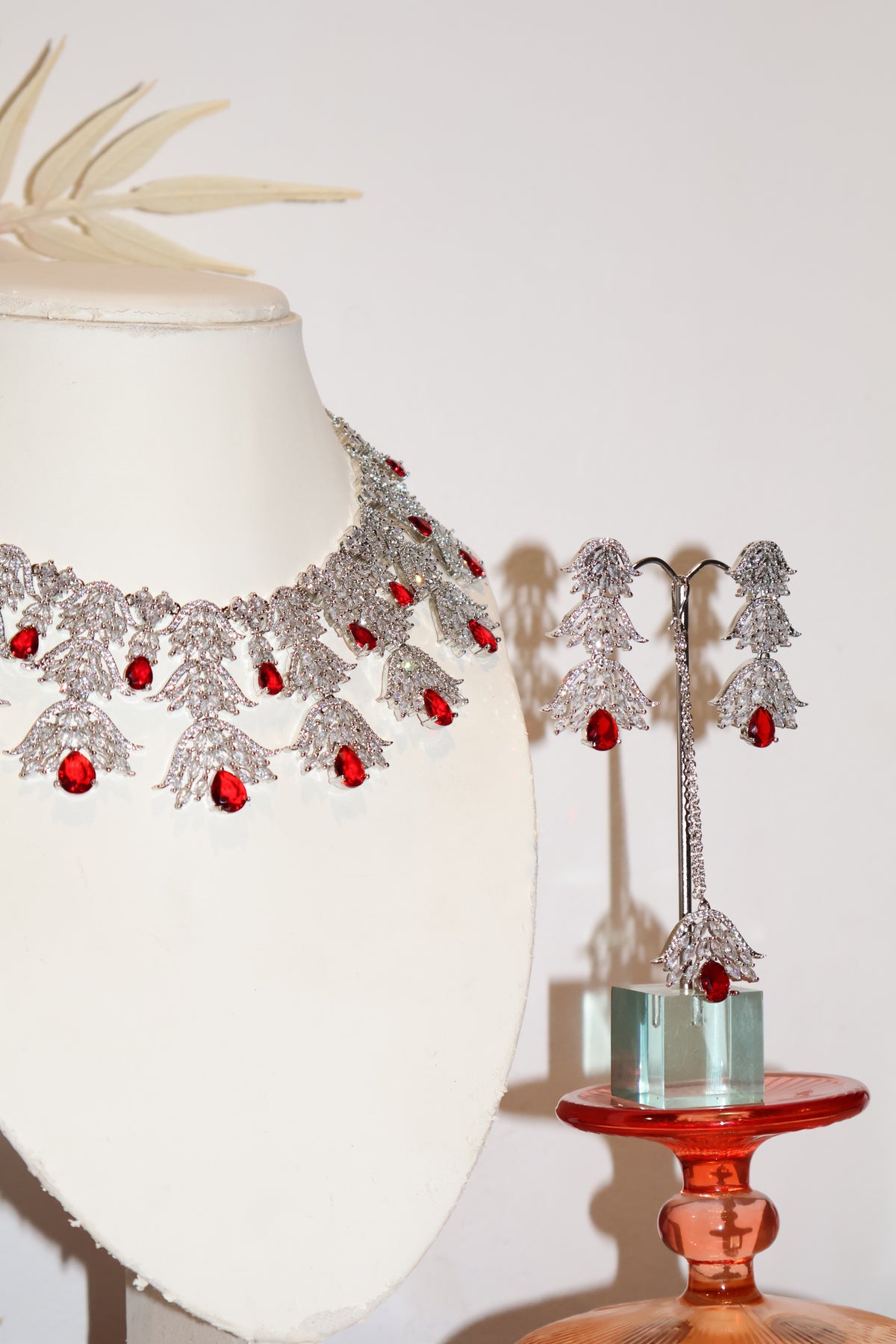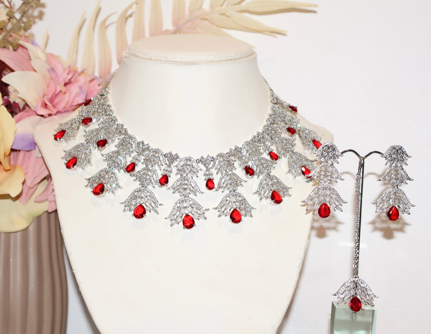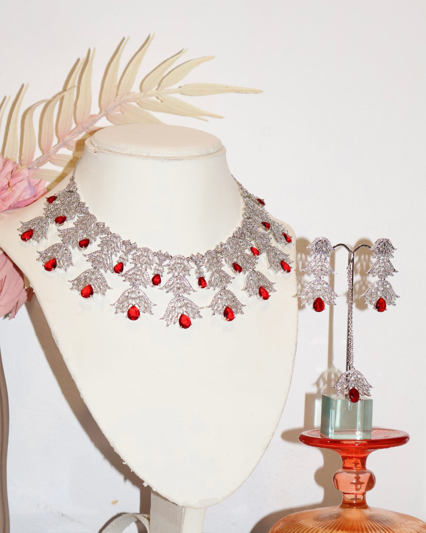 Presenting the Saathiya American Diamond Necklace Set, a radiant ensemble of South Asian jewellery. This exquisite piece showcases intricate handcrafted details, complemented by stunning cubic zirconia tones set against rhodium metal work. Elevate your style with the perfect blend of South Asian craftsmanship and timeless beauty. This necklace set is a true testament to cultural elegance, a must-have for those seeking refined and exquisite jewellery.